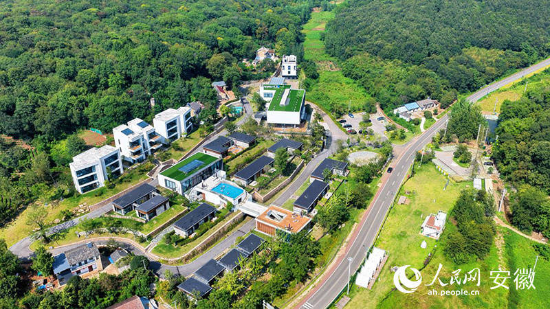 俯瞰滁州江淮分水岭风景道旁的民宿群。人民网记者 郭昊摄