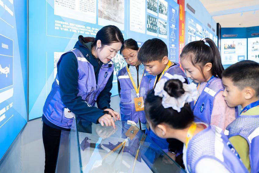 学生们在“中国梦航空梦”主题墙前合影留念,厚植航空报国情怀。刘子铭摄