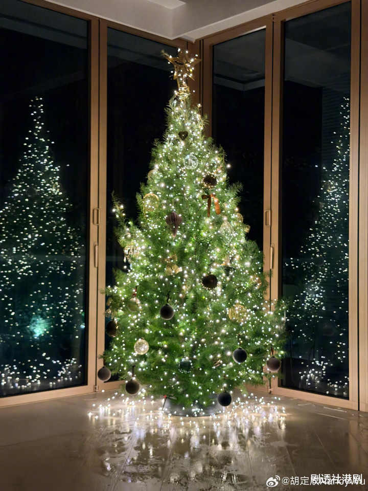 从其分享的动态中看得出,她将这棵圣诞树放在客厅的一角,圣诞树的顶部几乎触及到天花板,而客厅一角的落地窗也是非常吸睛,豪宅的奢华程度可以想象得出。