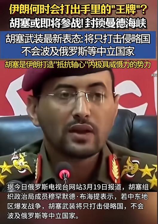 当地时间3月19日,也门胡塞武装政治局成员穆罕默德·布海提公开发布重磅声明:若局势被迫升级,胡塞武装不排除封锁曼德海峡,但将执行差别化打击规则。